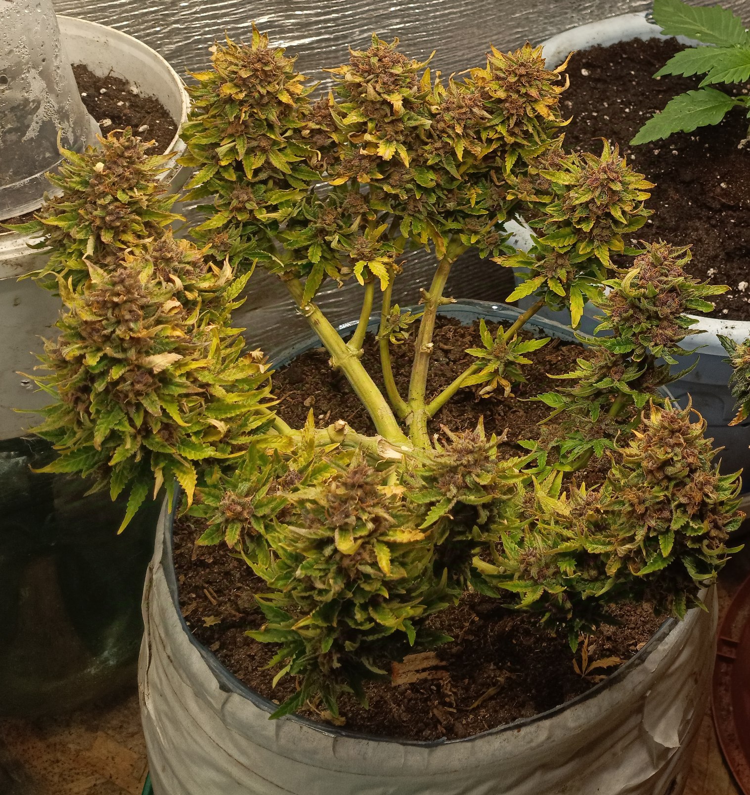 Растет отлично. Пережила избыток освещения, сухой воздух и жару за 30 градусов. Думал все, загнется. Lst тренировка. Постриг от желтизны и ничего - уже 30й день цветëт и все очень даже неплохо.