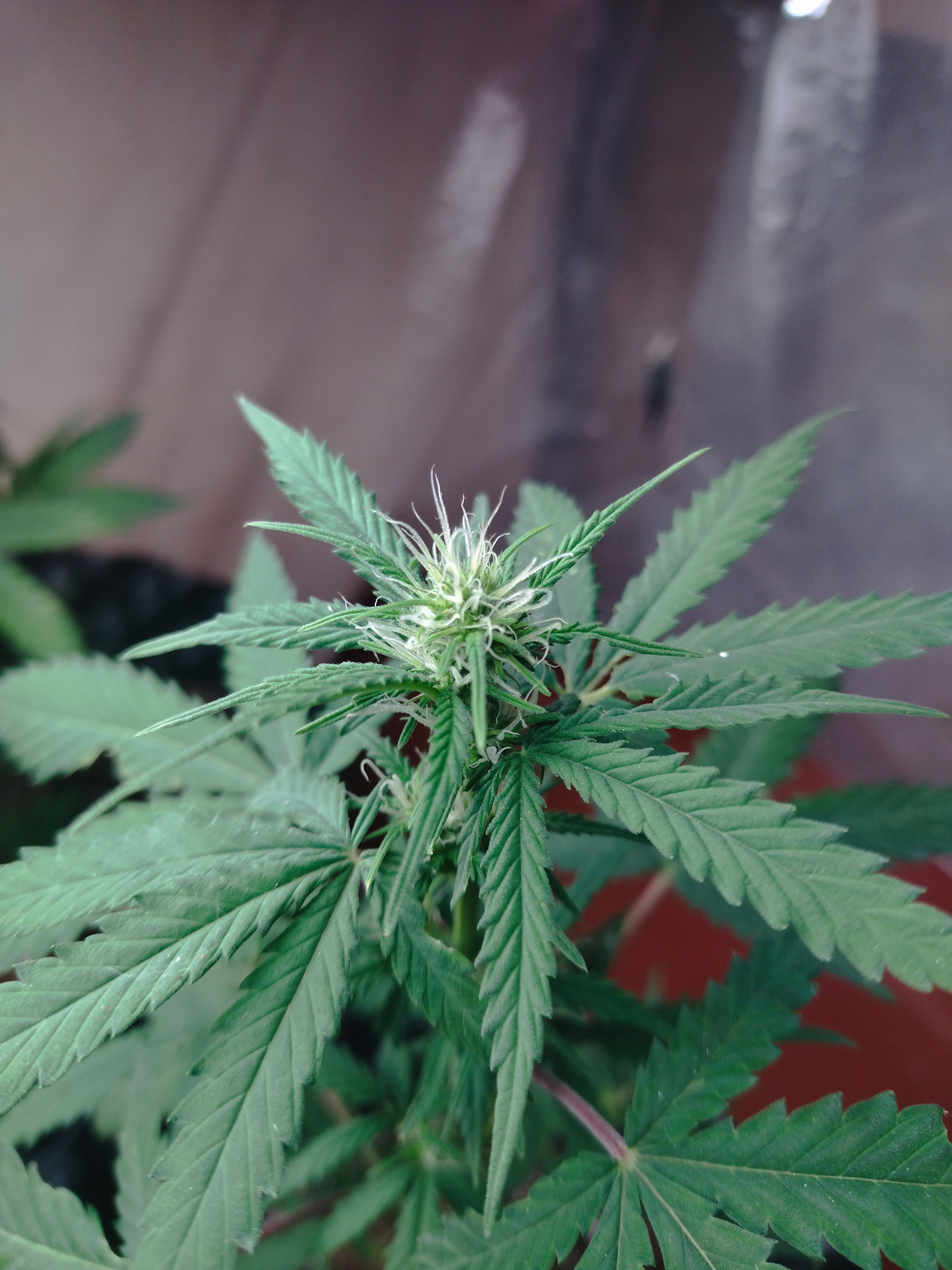Интересный сорт, 10-12 дней сейчас, запах у листьев уже есть, посмотрел через микроскоп за 200 рублей трихомы уже есть на листьях.