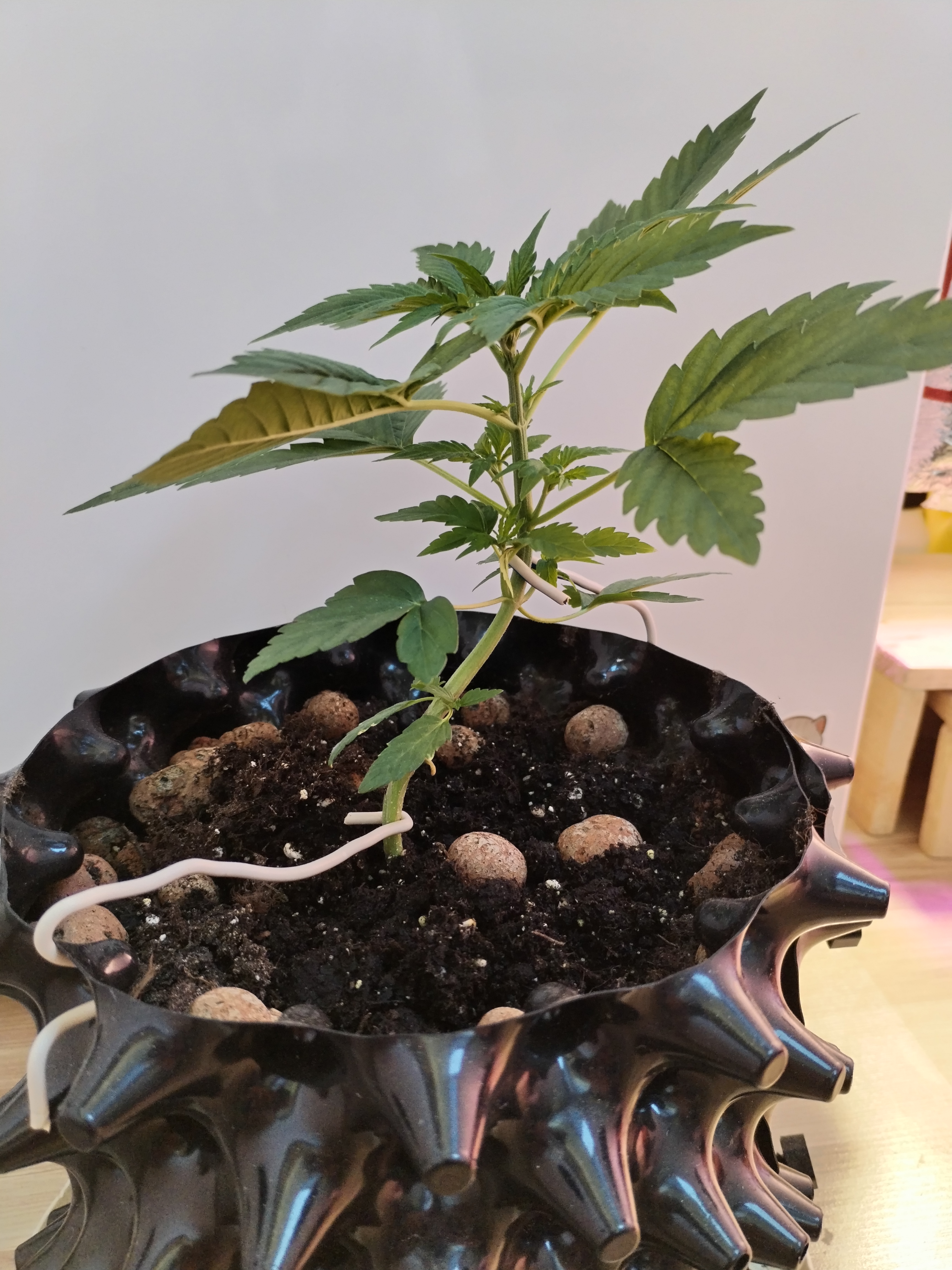 Не первый гров. Могу сказать что растет медленно по сравнению с сортом fastberry. Растет при температуре 23-27 всегда опрыскиваю водой. Поливаю раз в 3 дня.Днем на подоконнике ночь ставлю под led лампу 10 ват. На фото 2 день от каски. Первые две недели подержу дома потом пересажу в аут. Для гроверов которые хотят получить маленький куст ,берите горшок объемом 1л длина растения будет примерно 30 см при помощи скрога можно получить отличный урожай.