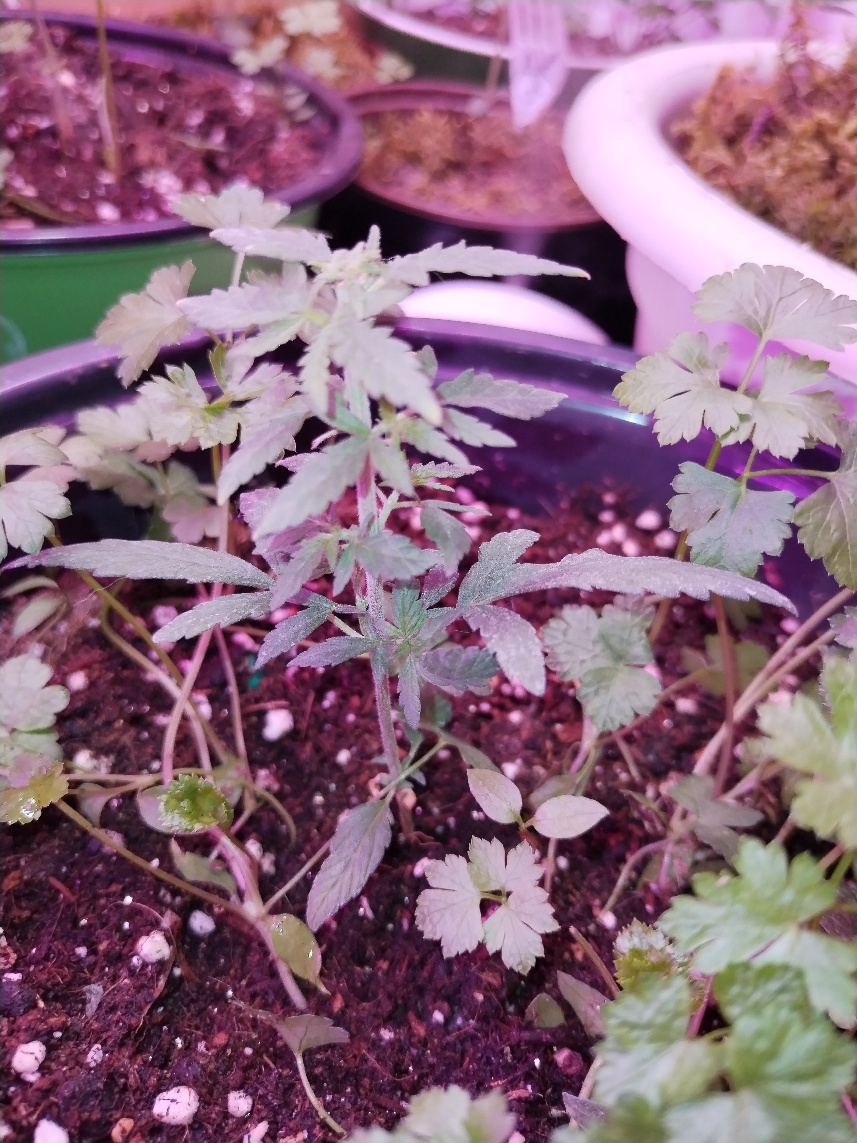 Корень за сутки на батарее иначе трое суток, главное подложить что-то чтобы не перегреть. Далее по горшочкам и тут блин рост остановился на малюске, пришлось врубать больше света и влаги и контролить, удобр на начале много не понравилось им, лучше чуть позже начинать вносить в земельку, а затем и в полив иначе сильно тормозит, чего нет, например, у АК -47, этим ваще похер, прут как танки на поляне.